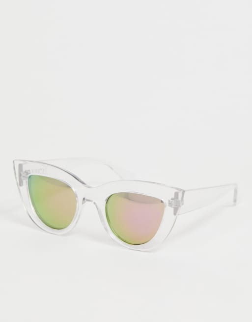 From london based label skinnydip known for its playfully head turning designs this sleek and modern pair provides 100 uv400 protection and comes with a protective holopouch to store when you re not wearing them.